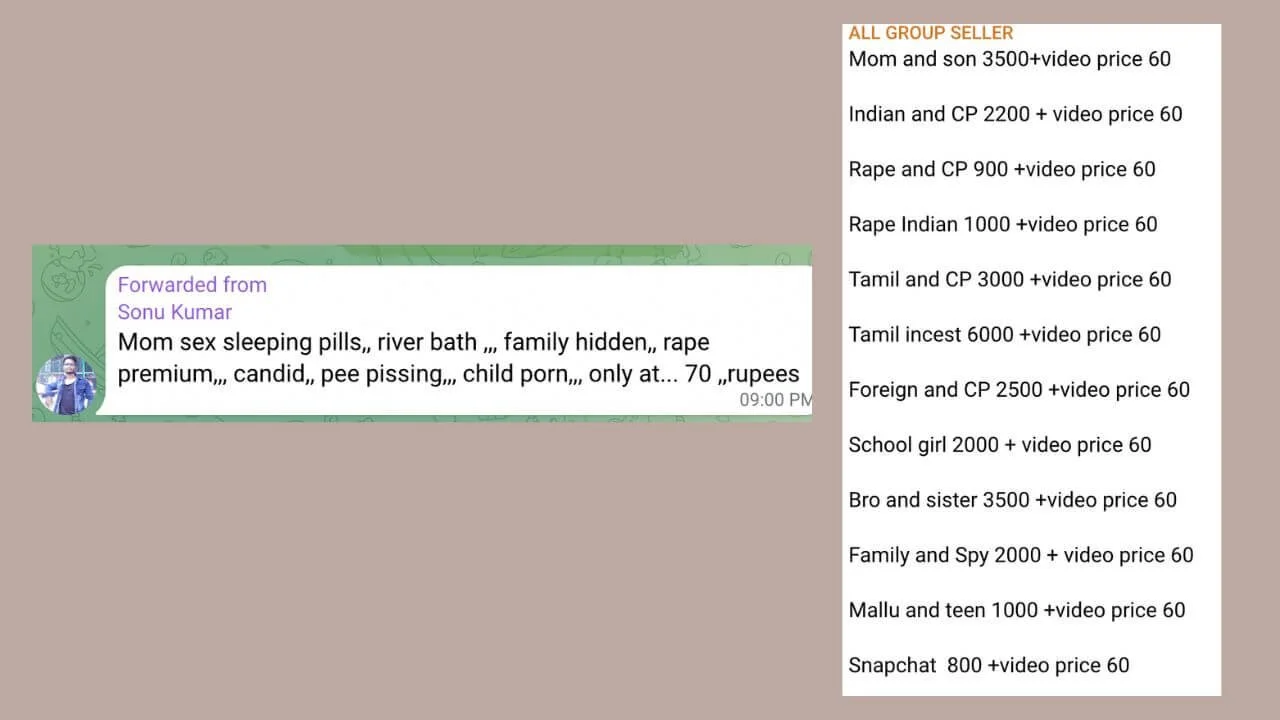 A covert investigation by Hyderabad-based NGO Prajwala, led by activist Sunitha Krishnan, uncovered rampant CSAM circulation on Telegram. In just two weeks, investigators accessed 38 GB of content for 600 rupees, involving children as young as three, in groups with more than 30,000 members. Krishnan accused Telegram of enabling the trade by allowing pseudonyms, encrypted chats and massive groups, in clear violations of the POCSO (Protection of Children from Sexual Offences) Act, which makes it illegal to use a child for pornographic purposes, and punishes possession, storage or transmission of such material. Telegram only issued an automated response, with no official statement.